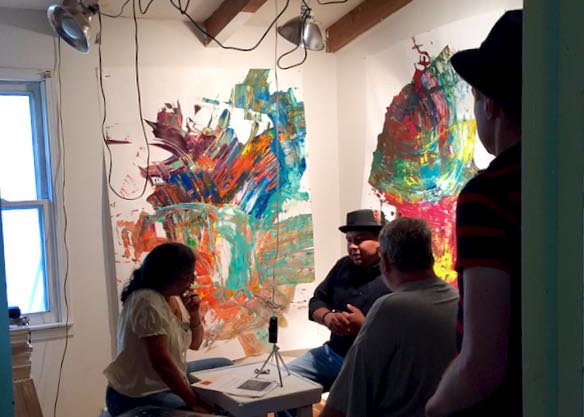 IMG_9621 Published July 19, 2016 at 584 × 417 in Final Thoughts from Frank Juarez: Year 3 MAS Project ← Previous Next → MAS founder/art educator, Frank Juarez being interviewed by Artspeak Radio host, Maria Vasquez Boyd