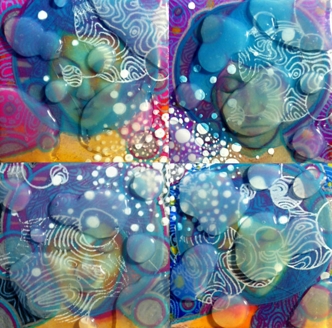06 Published February 5, 2016 at 672 × 663 in Protected: BACKROOM ← Previous Next → One, Two, Three, Four, Colored pencil, watercolor, hot glue, serigraphy, and resin on board, 8 inches by 8 inches, 2014